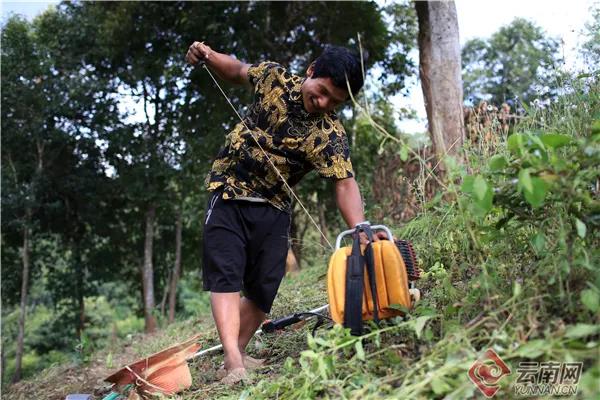 此時(shí),娜四正在茶地里查看茶樹的生長(zhǎng)情況,時(shí)不時(shí)用鋤頭翻翻地、培培土;扎藥則拿著電動(dòng)割草機(jī)清理隔壁山坡上的雜草。割草機(jī)的聲音很嘈雜,掩蓋了屋前潺潺的流水聲,停頓的間隙與山林間的蟬鳴相互唱和,卻全然沒有打擾到娜四小兒子在她身后的背簍里熟睡。“這個(gè)季節(jié)種茶容易活,我已經(jīng)泡好了茶籽,等那片地清理出來,我們準(zhǔn)備開溝種上茶,還有之前種了茶籽沒有活的地方,也要補(bǔ)種一下。”娜四介紹,因?yàn)榍謇砉ぷ鞅容^復(fù)雜,夫妻倆打算在小木屋住一晚,天亮了早早開工。