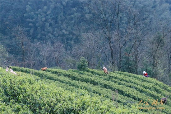 “這一片基地已經(jīng)是今年第二次采摘了,今年天氣好,早茶生長(zhǎng)很快,品質(zhì)也很高。”春日暖陽(yáng)照耀下,湖南省常德市桃源縣楊溪橋鎮(zhèn)蔡家塘村的里寶山有機(jī)茶園基地,迎來了早茶采摘的黃金時(shí)間。采茶工們正在動(dòng)作熟練的采摘茶葉,桃源縣君和野茶開發(fā)有限公司董事長(zhǎng)詹立君興致勃勃地向記者介紹著里寶山有機(jī)茶園基地情況和今年茶葉的長(zhǎng)勢(shì)。
