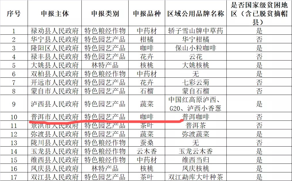 普洱咖啡上榜第二批“云南省特色農產(chǎn)品優(yōu)勢區(qū)”名單